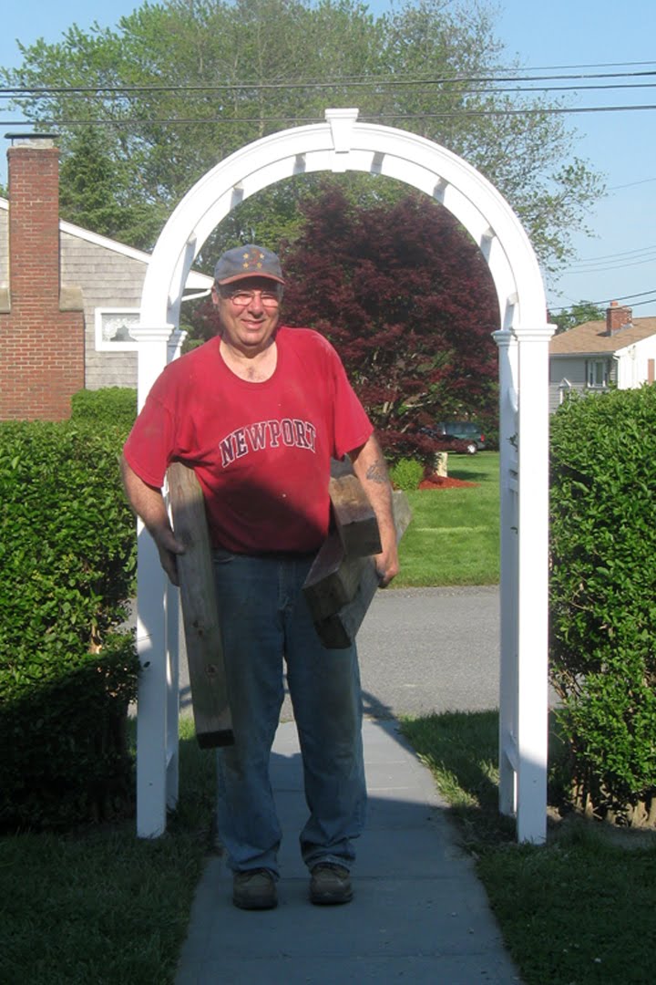 Moving into the other non-husky half of the yard, here's some pics from Mom's project: the new garden island. Here's a long view: